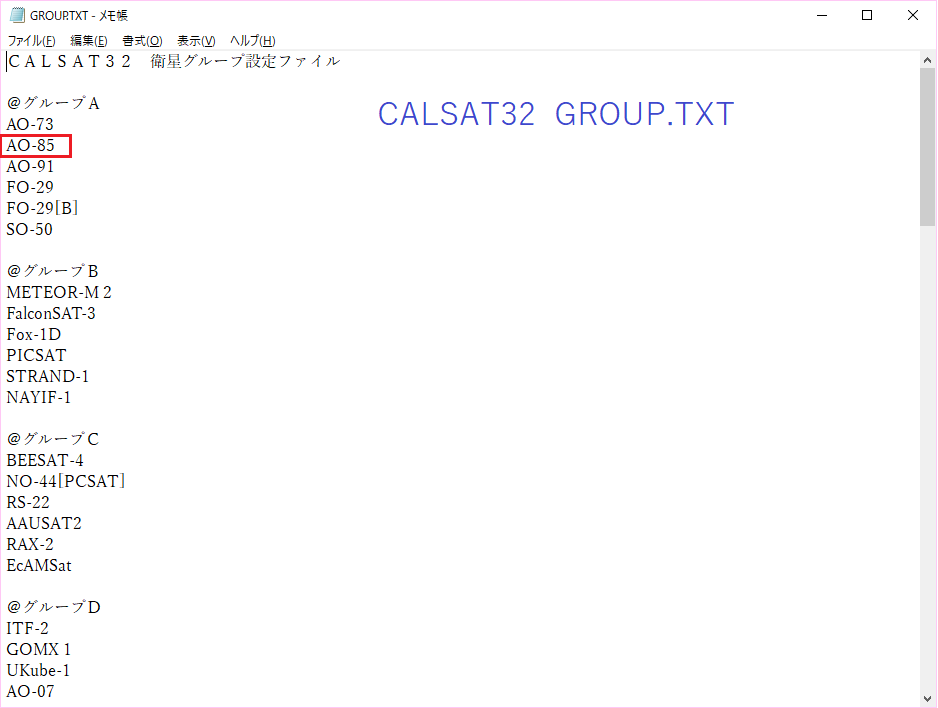 ③さらに、衛星グループは、1グループ6つの衛星を設定出来ます。任意のグループにAO-85を置きます。