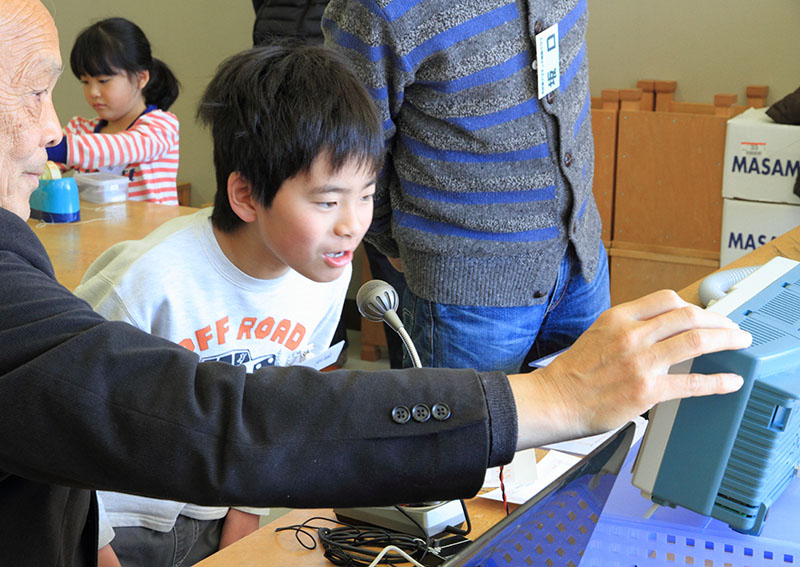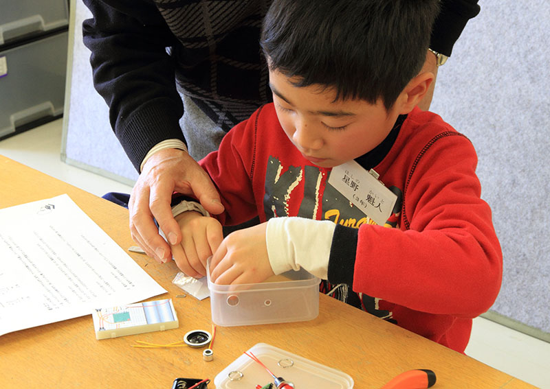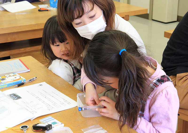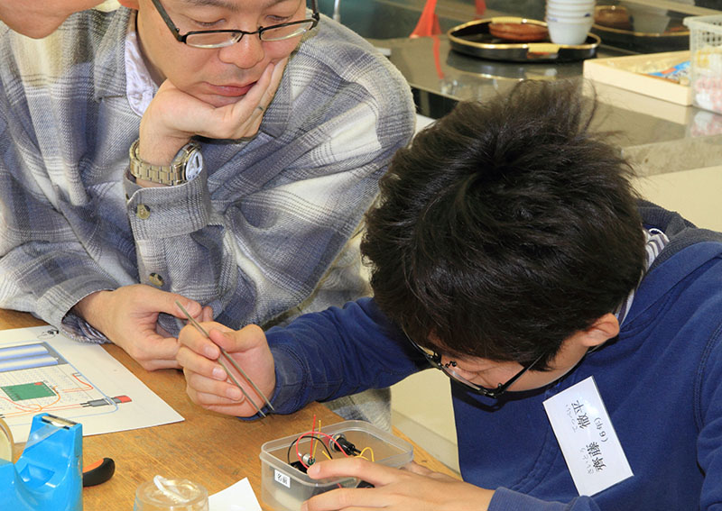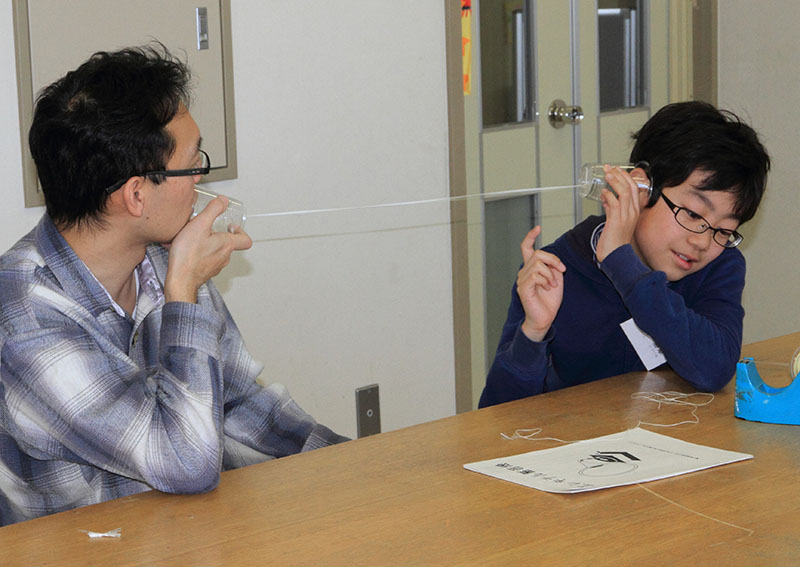 平成26年3月15日(土) 親子で電子工作 ボイスレコーダーを作りました。音の伝わり方等の実験は、糸電話で、